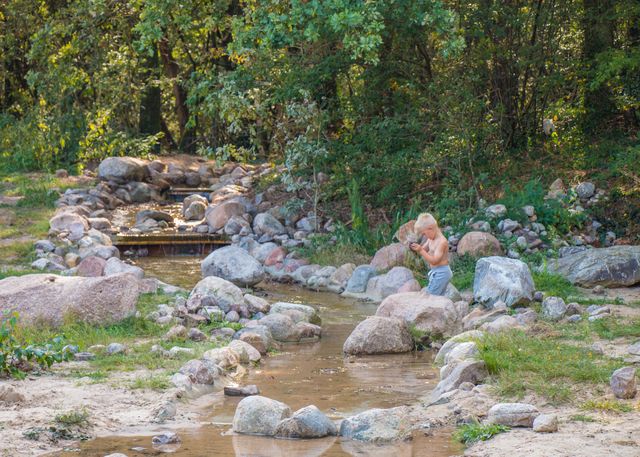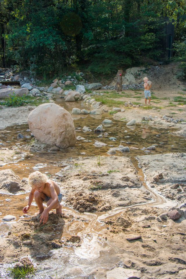 Bij ons kun je zwemmen, klimmen, kliederen en bovenal ontdekken. We dagen je uit om je fantasie te gebruiken. Waarom? Om je eigen manier te vinden, jouw pad en jouw plezier. Er is namelijk geen verkeerde manier om te beleven. Tussen de hoge bomen van het bos kun je onder andere balanceren, slingeren, muziek maken of een toneelstuk opvoeren. Krijg je het daar na een tijdje te warm van? Ga op zoek naar de keienrivier of neem een duik in het zwembad!