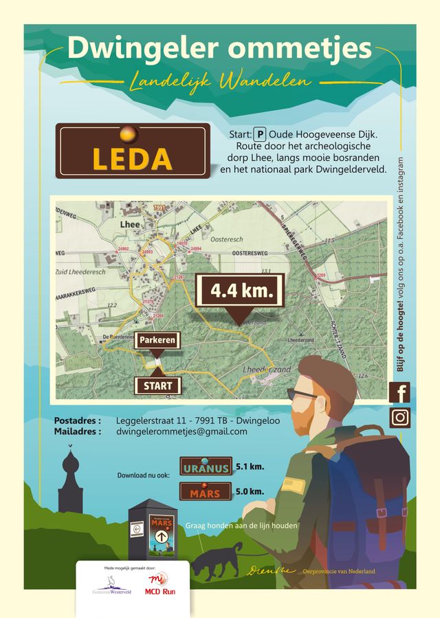 Het Dwingeler Ommetje Leda is een bewegwijzerde route van 4,2 km door het prachtige dorpje Lhee en deels door Nationaal park het Dwingelderveld. Lhee staat bekend om zijn mooie oude rietgedekte boerderijen, het kleinschalige landschap en de jaarlijkse oogstdag. De route is niet overal verhard.